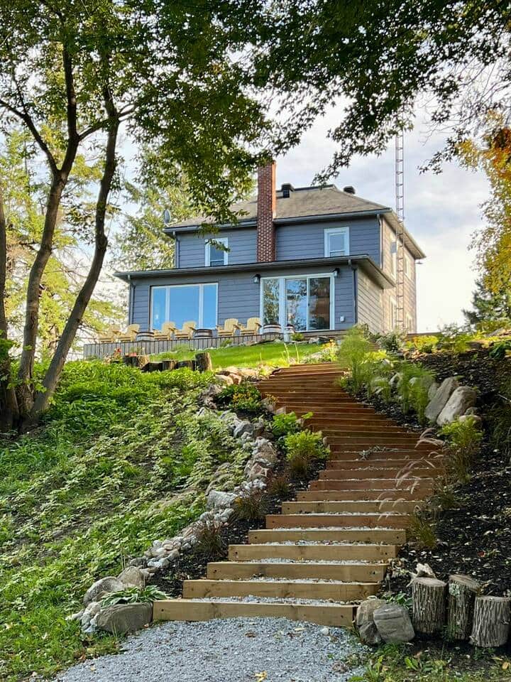 Welcome to our peaceful waterfront family retreat on the Mississippi River. Set on two private acres in Lanark, this spacious cottage offers calm water views, room to relax and reconnect, and simple wellness amenities including a wood-burning sauna and outdoor hot tub. Designed for families and groups, it’s a place for slow mornings by the water, shared meals, outdoor play, and cozy evenings together in nature.
