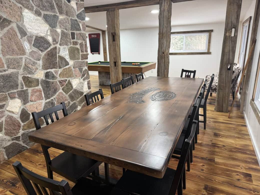 This fully renovated two-storey home offers multiple bedrooms, including family-friendly bunk and trundle-style sleeping spaces, along with open living and dining areas designed for large groups. Guests have exclusive access to the entire home and surrounding property, with indoor and outdoor spaces that allow everyone to gather comfortably while still having room to spread out.
